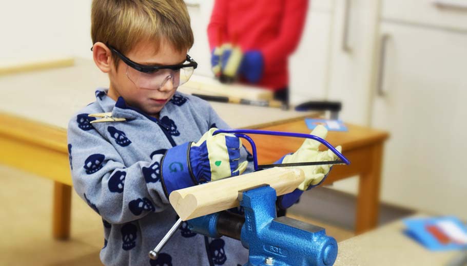 Die zweite Besuchsreihe wird vom Technik-Tiger gestaltet. Die Plüschfigur zieht mit ihrer Werkstatt im Kindergarten ein und bietet den Kindern die Möglichkeit, erste Erfahrungen mit Werkzeug und technischen Themen zu machen. In kleinen Gruppen lernen die Kinder an verschiedenen Stationen den sicheren Umgang mit Säge, Hammer, Schraubenzieher und Co. Immer wieder begeistert es die Kinder, wenn sie durch den eigens geschalteten Stromkreis eine kleine Glühlampe selbstständig zum Leuchten bringen oder die technischen Grundprinzipien des Alltags mit Hilfe der Zahnräder kennenlernen.